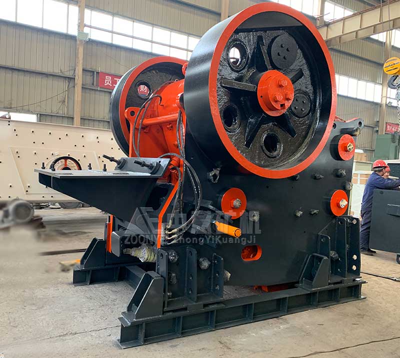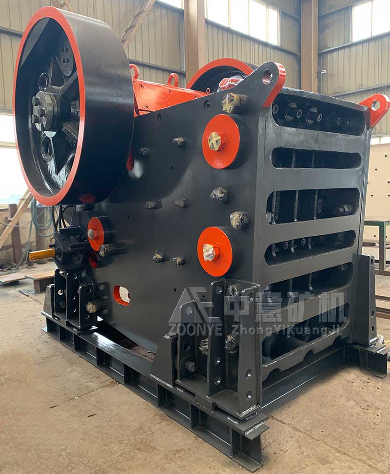 ?主要由活動(dòng)鄂破、活動(dòng)鄂板壓塊、固定鄂板、機(jī)體架、固定鄂板壓塊、上邊護(hù)板、中邊護(hù)板、下邊護(hù)板、肘板墊、調(diào)整座、彈簧、保護(hù)裝置、動(dòng)鄂體、六角碟母、飛輪、護(hù)板、偏心塊、蝶形彈簧等組成。