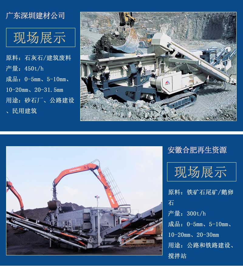 建筑垃圾破碎隨著時(shí)代的變化和進(jìn)步,由原先的固定式生產(chǎn)線逐步向移動(dòng)式破碎篩分站轉(zhuǎn)變,可移動(dòng)操作模式,給客戶轉(zhuǎn)場(chǎng)作業(yè)帶來(lái)方便,多樣性設(shè)備配置,適合不同類型建筑垃圾,根據(jù)客戶所需骨料粒度,配置合適的篩分設(shè)備,不僅有常規(guī)的輪胎驅(qū)動(dòng)移動(dòng)站,而且為了更能適應(yīng)破碎現(xiàn)場(chǎng)惡劣的地勢(shì)條件,公司生產(chǎn)推出履帶式移動(dòng)破碎篩分站,力求達(dá)到客戶滿意。